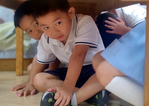 各班老师停止一切班级活动,以最快的速度按照预定的方案,关闭教室门窗,用桌椅柜子等堵住教室门,有序组织幼儿进行安全躲避,全力保护幼儿的安全。与此同时,幼儿园应急小组迅速集结,在社区民警的指导下与 “歹徒” 周旋,最终通过密切配合,成功将 “歹徒” 制服,险情得以解除。
